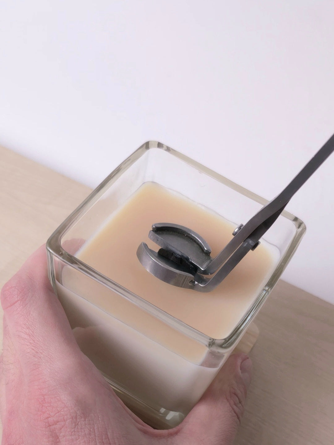 Suggerimento: Puoi farlo facilmente con un'apposita pinza o con le dita (quando la candela è completamente fredda). Questo semplice gesto aiuta a mantenere una fiamma più pulita e regolare, evitando fumo e bruciature irregolari.
